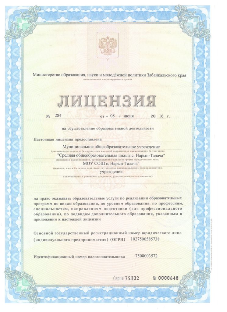 МОУ СОШ с. Нарын-Талача Забайкальский край